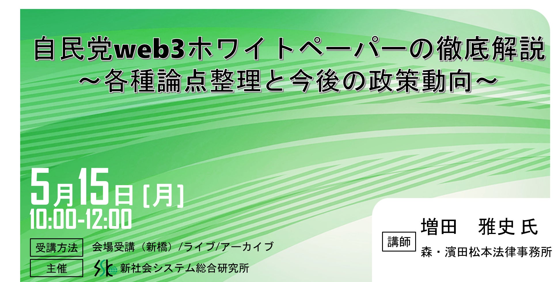 「自民党web3ホワイトペーパーの徹底解説」と題して、森・濱田松本法律事務所 増田 雅史氏によるセミナーを2023年5月15日(月)に開催!!