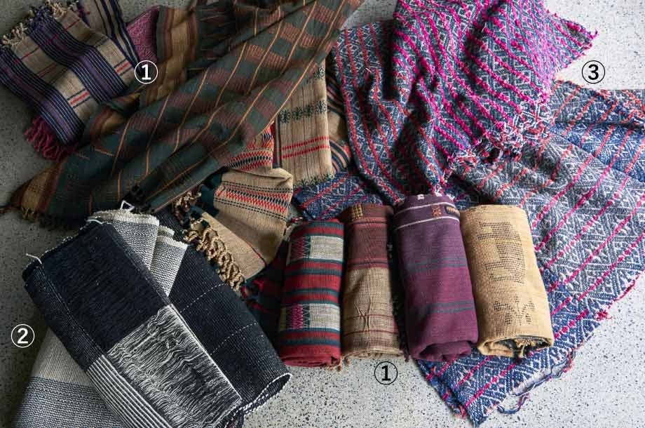ナガランドに住むナガ族が手織りでつくるものや、カレン族が鞄をつくるために織る輪っか状になったブランケット、結婚式の際に使用されるブランケットなど、民族それぞれの生活の中で使われてきたファブリック。彼らの生活様式や文化を表す刺繍や柄、色使いが魅力です。