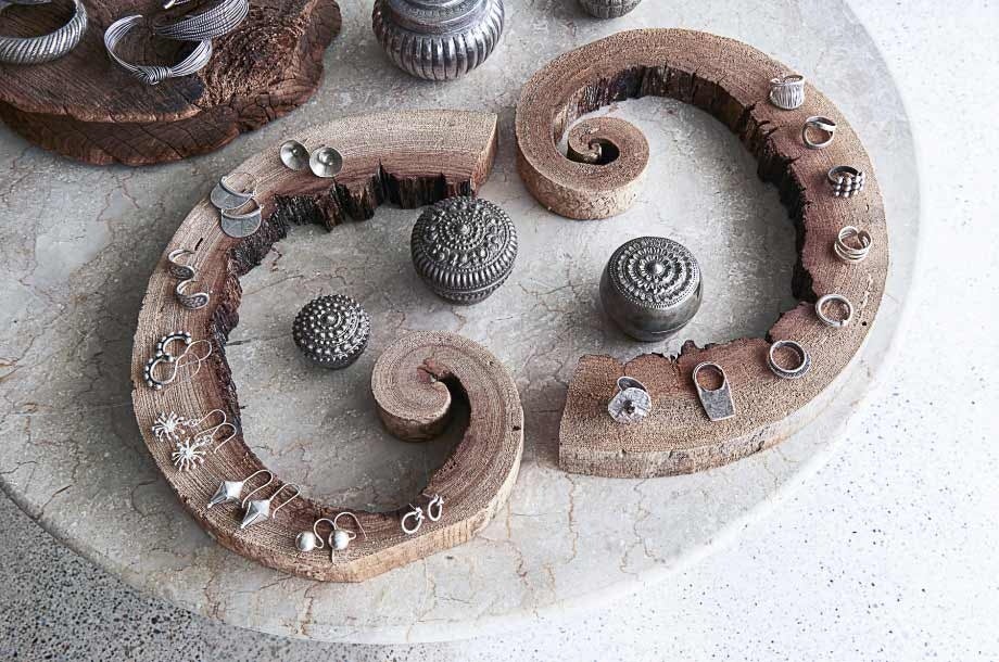 ベトナムやタイなどの山岳に暮らす、カレン族やアカ族といった山岳民族の方がつくっているシルバージュエリー。彼らの生活様式や文化を表すオリジナリティあるデザインや紋様が施され、現代のスタイリングにモダンなエッセンスとして取り入れていただけるアイテムです。