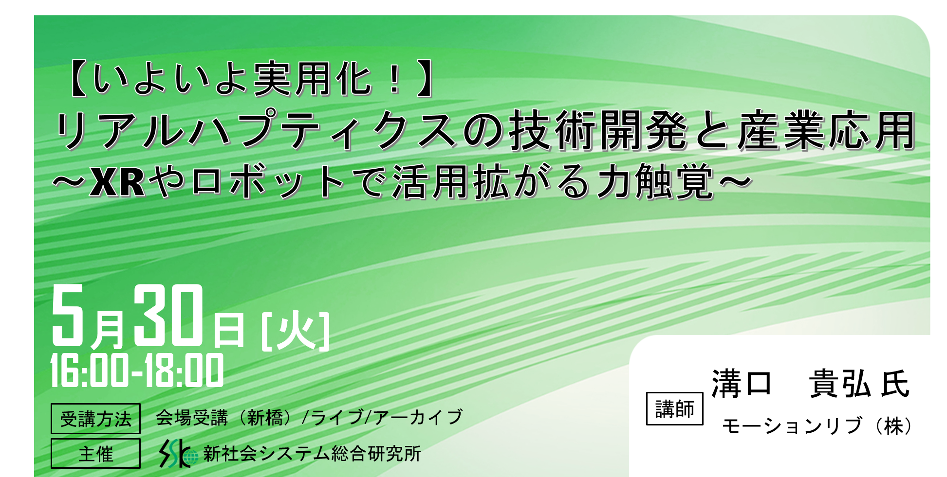 「リアルハプティクスの技術開発と産業応用」と題して、モーションリブ株式会社 代表取締役CEO 溝口 貴弘氏によるセミナーを2023年5月30日(火)に開催!!