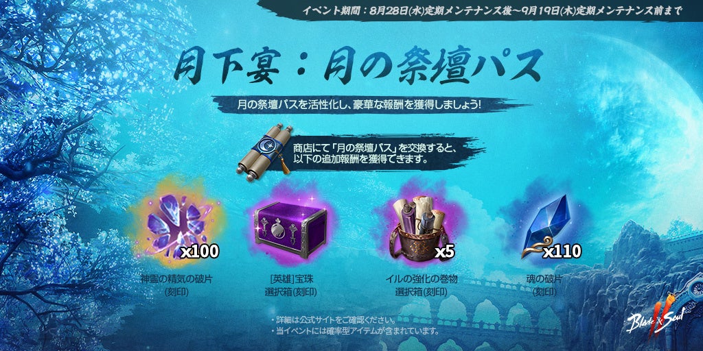 期間中、指定されたミッションを達成すると豪華報酬が獲得できるシーズンパス「月の祭壇パス」を開催します。