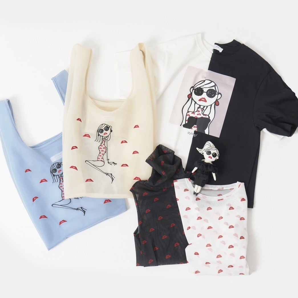 styling/をまとったJosie(ジョシー)が描かれたTシャツ・BAGや、リップアイコンを落とし込んだチュールシリーズ、Josieグッズとしては初登場のドールチャームなど計7型のラインアップ。Josieと共にファッションが楽しめるスペシャルコレクションです。本コラボレーションアイテムをお買い上げのお客さまにオリジナルポストカードを、さらに本コラボレーションアイテムを含んだ税込み¥20,000以上お買い上げのお客さまにリップチュール巾着をプレゼントいたします。