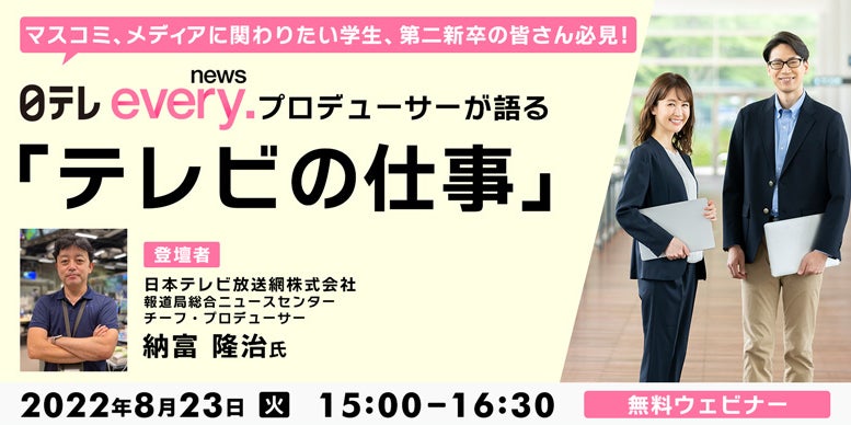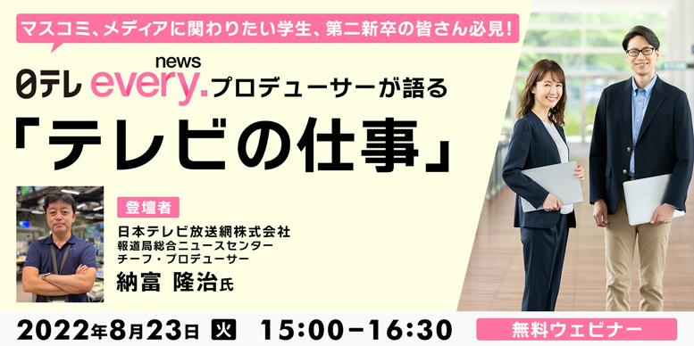 【学生・第二新卒向け】マスコミ・メディア志望の方必見!8/23(火)「日本テレビ『news every.』プロデューサーが語る“テレビの仕事”」