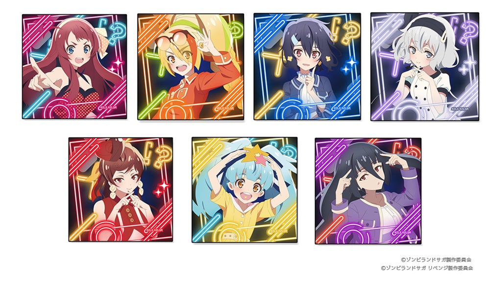 「ゾンビランドサガ スペシャルくじ」では、TVアニメ『ゾンビランドサガ』の作中に登場するアイドルグループ「フランシュシュ」のメンバー7名のイラストを使用したA3クリアポスター、15cmBIG缶バッジ、ネームアクリルブロック、マイクロファイバーコースターなど、ここでしか手に入らない豪華な商品をご用意しました。