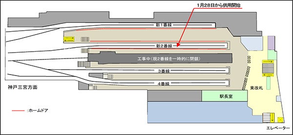 阪神電気鉄道株式会社(本社:大阪市福島区、社長:秦雅夫)では、2015年3月から実施している大阪梅田駅改良工事において、改良工事の進捗に伴い、1月28日(土)から、新2番線の供用を開始します。