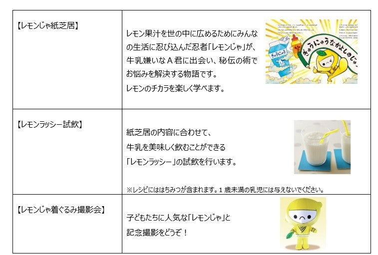 実施内容 :親子に向けた試飲も伴うレモン食育イベントを以下内容で展開予定