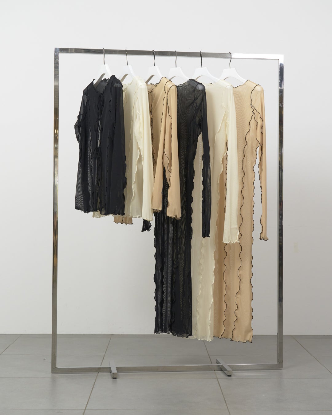 チュールシリーズは、この時期に嬉しいウォッシャブル。水着などの上にさっと重ねることができ、スタイルカバーをしながらスタイリッシュに決まるマルチウェアです。