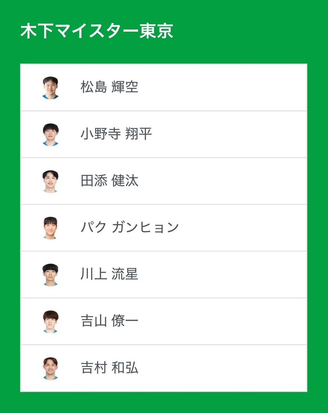 ノジマTリーグ 2025-2026シーズン 公式戦 11月9日(日)開催 木下マイスター東京 vs T.T彩たまのベンチ入り選手を発表いたします。