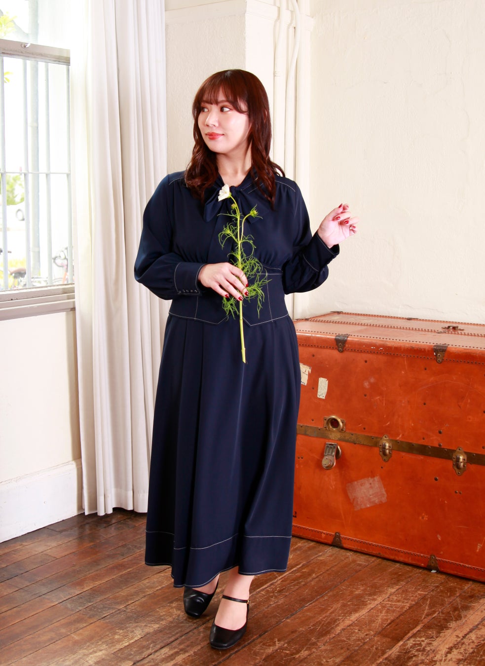 <エマフローレス>こまち@komachinico × EMMA FLORES ウエストコルセット配色ステッチワンピース 15,400円※ECご予約商品。本イベントにてサンプルをご覧いただけます。