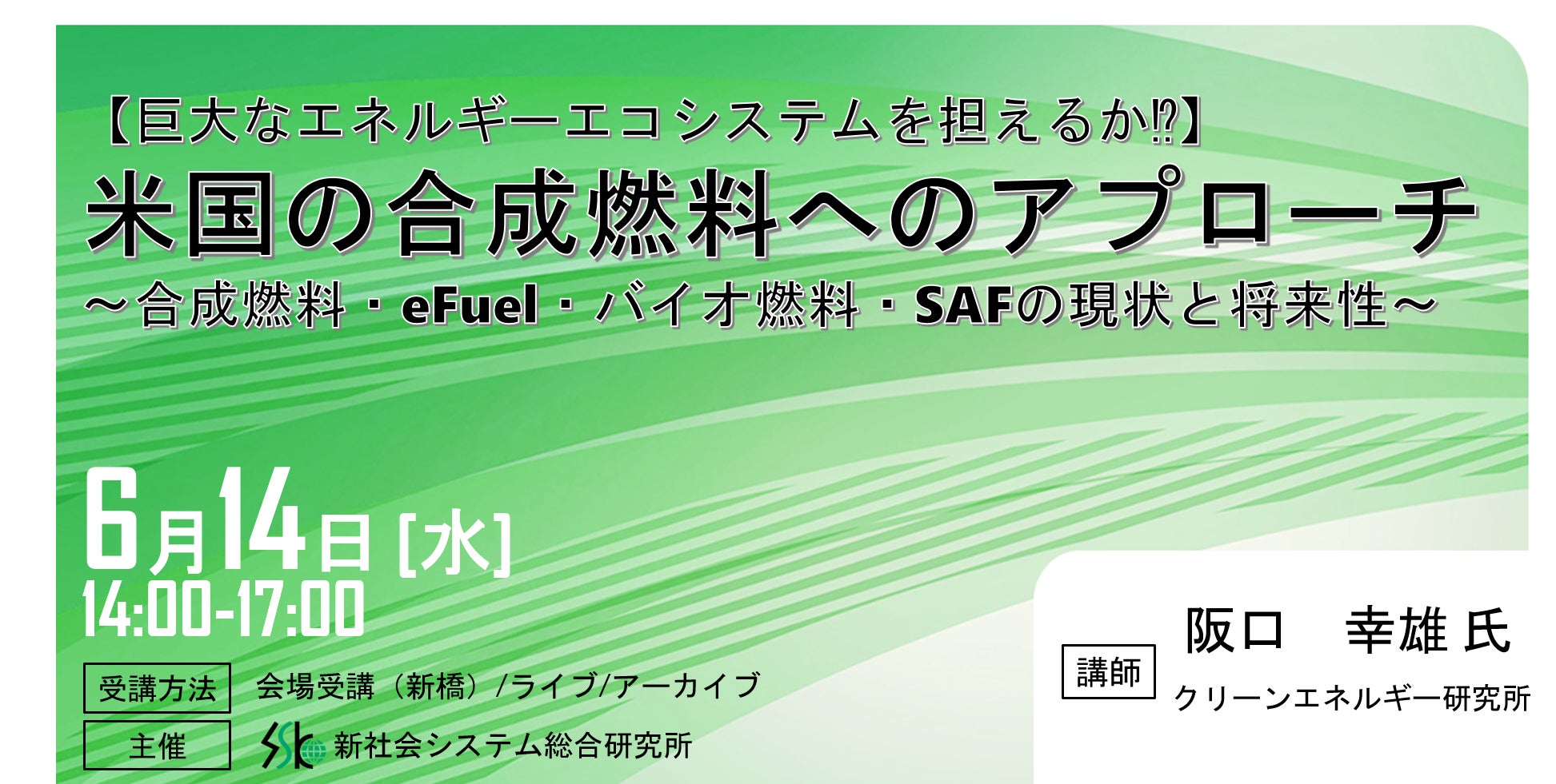 「米国の合成燃料へのアプローチ」と題して、クリーンエネルギー研究所 代表 阪口 幸雄氏によるセミナーを2023年6月14日(水)に開催!!