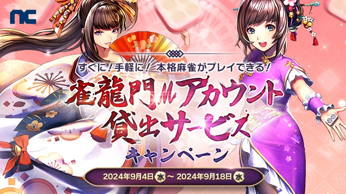エヌ・シー・ジャパン株式会社(本社:東京都港区、代表取締役:林 元基(イム ウォンキ)、以下エヌシージャパン)は、PCとスマートフォン向け超美麗本格3D麻雀ゲーム『雀龍門M』にて、9月4日(水)より「ビンゴミッションイベント」と「雀龍門Mアカウント貸出サービスキャンペーン」の開催をお知らせします。