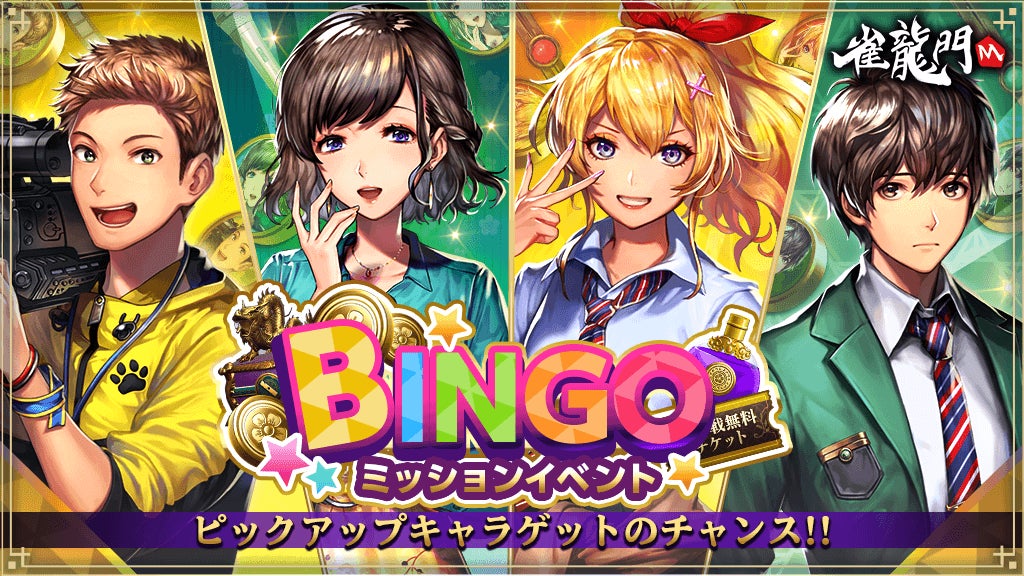 『雀龍門M』「ビンゴミッションイベント」を開催!毎週更新されるミッションをクリアして豪華報酬をゲットしよう!さらに雀龍門Mアカウント貸出サービス利用でBitCashが抽選で当たるキャンペーンも開催