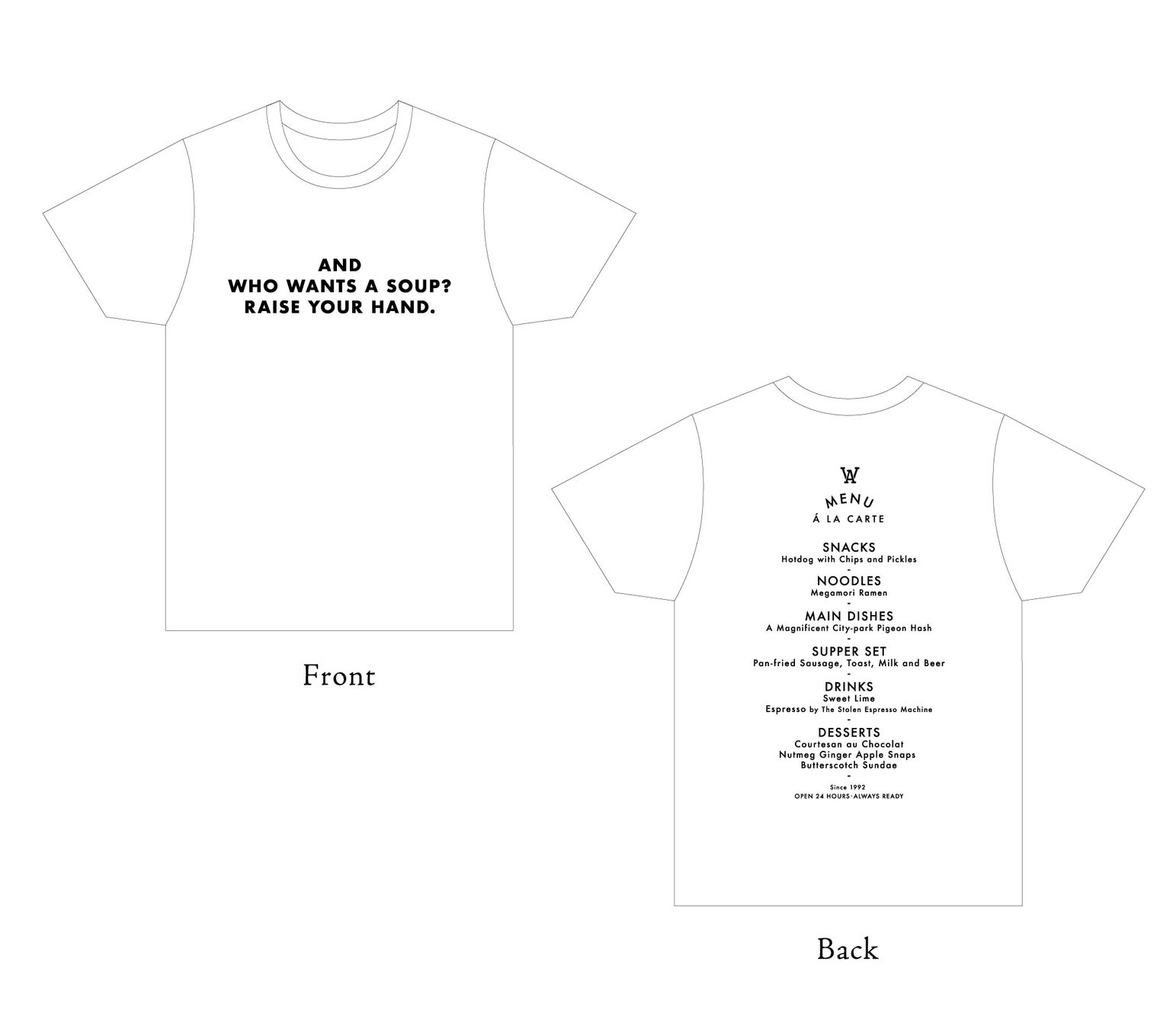 【オリジナルグッズ、ウェスアンダーソン作品のフードメニューTシャツを販売】