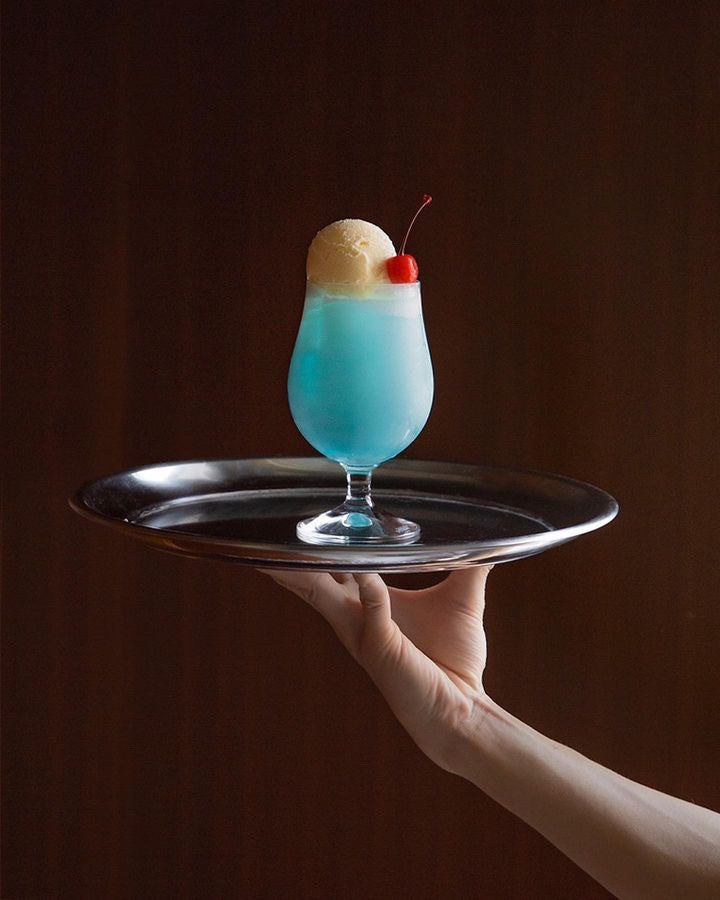 今回は、人気のクリームソーダでウェスアンダーソンらしいカラーを表現。また、作中でウッドロウが食べていたコテコテのホットドッグも再現。