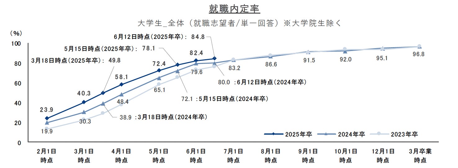就職プロセス調査(2025年卒)「2024年6月12日時点 内定状況」