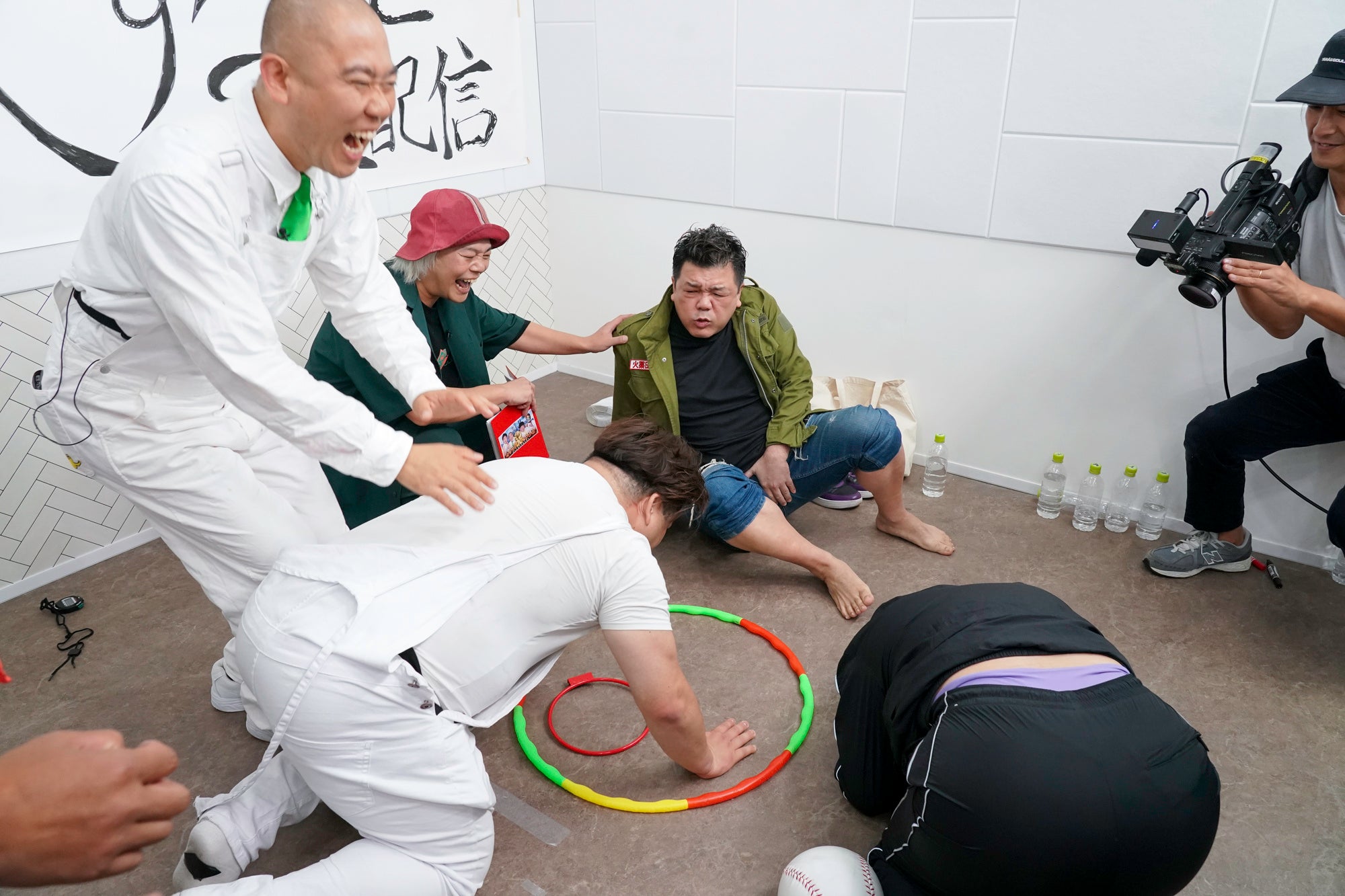 それぞれが持ち寄った「ガッツ企画」では、数字が書かれた井下の腹筋にボールを当てるストラックアウトや、熊谷の「ホップ、ステップ、ガッツ」企画などで気合いと根性を見せました。