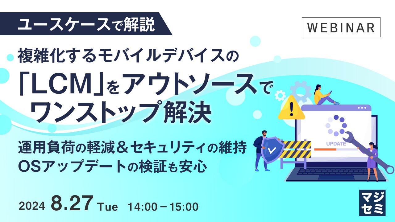 マジセミ株式会社は「【ユースケースで解説】複雑化するモバイルデバイスの「LCM」をアウトソースでワンストップ解決」というテーマのウェビナーを開催します。