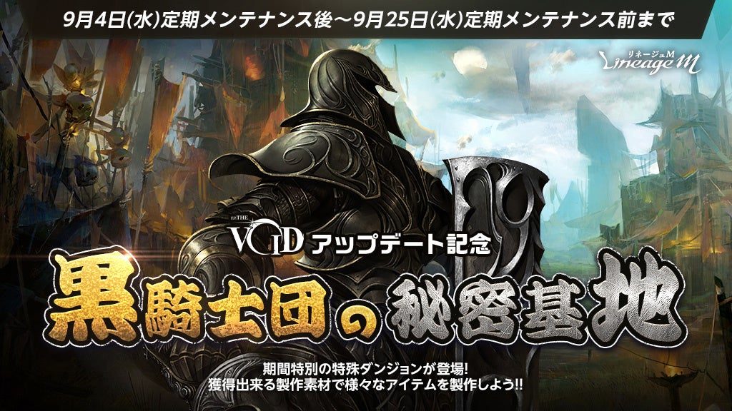 PCオンラインRPG「リネージュ」のモバイル版タイトル『Lineage M(以下、リネージュM)』のサービス、運営をしているエヌ・シー・ジャパン株式会社(本社:東京都港区、代表取締役:林 元基(イム ウォンキ)、以下エヌシージャパン)は、最新アップデート「EP.THE VOID」を本日9月4日(水)に実施したことをお知らせします。