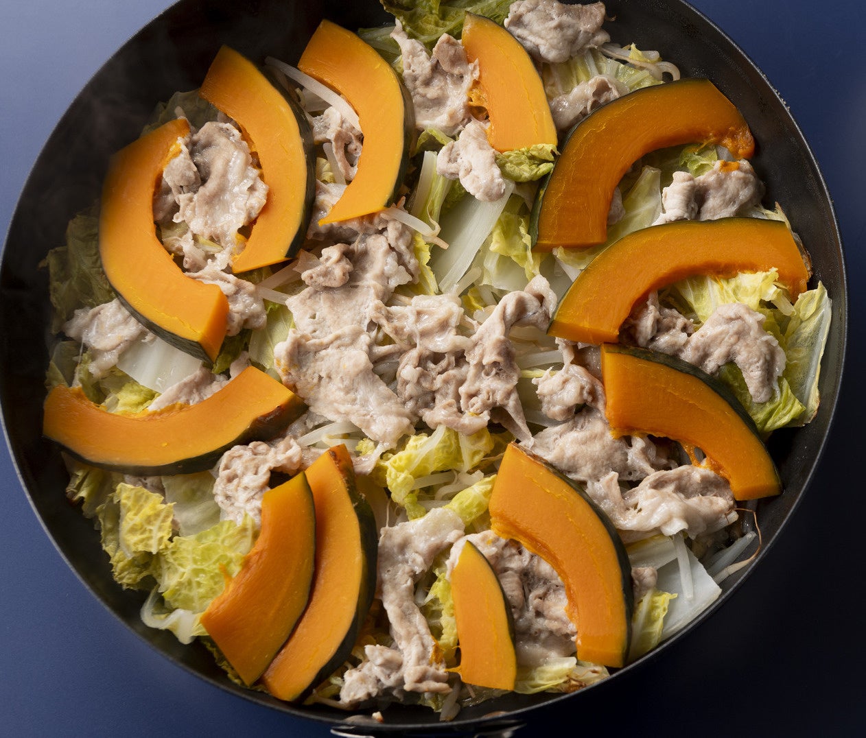 なべのレシピは、加熱用ポリ袋やクッキングシートを使いこなし、一度で2品分の加熱を終わらせます。ポリ袋は非加熱用と加熱用を使い分けて、ボウル代わりとしてはもちろん、保存用にも。