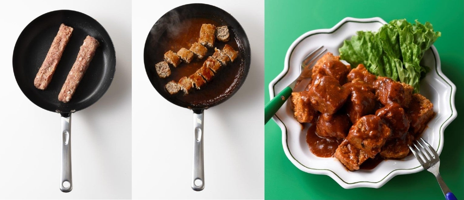 「棒からはじまるミートボール」は、たねをこねるのもフライパンの中。洗い物も少ないから、片づけも楽チン!