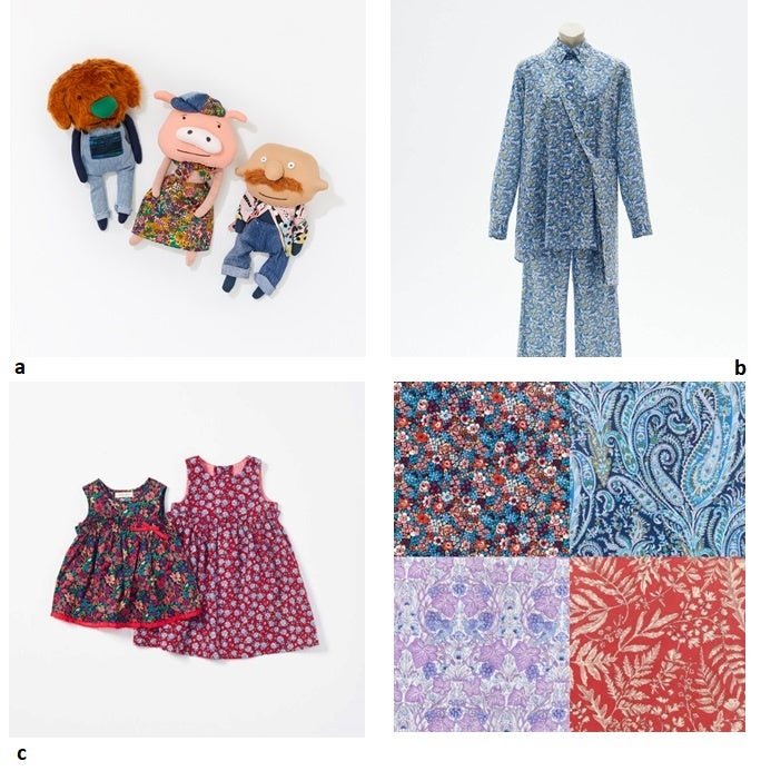 パジャマをデザインコンセプトにしたユニセックスで楽しめるセットアップと、広げると枕カバーのような形状になるバッグ。デザイナーがセレクトした3柄のリバティ・ファブリックスを使い、シャツ・パンツ・バッグの3アイテムセットをつくりました。