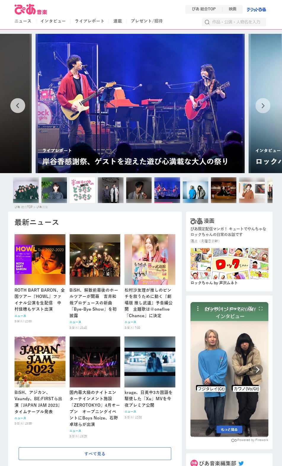 ぴあの[Web版]も拡充中。「ぴあ音楽」がスタート!!