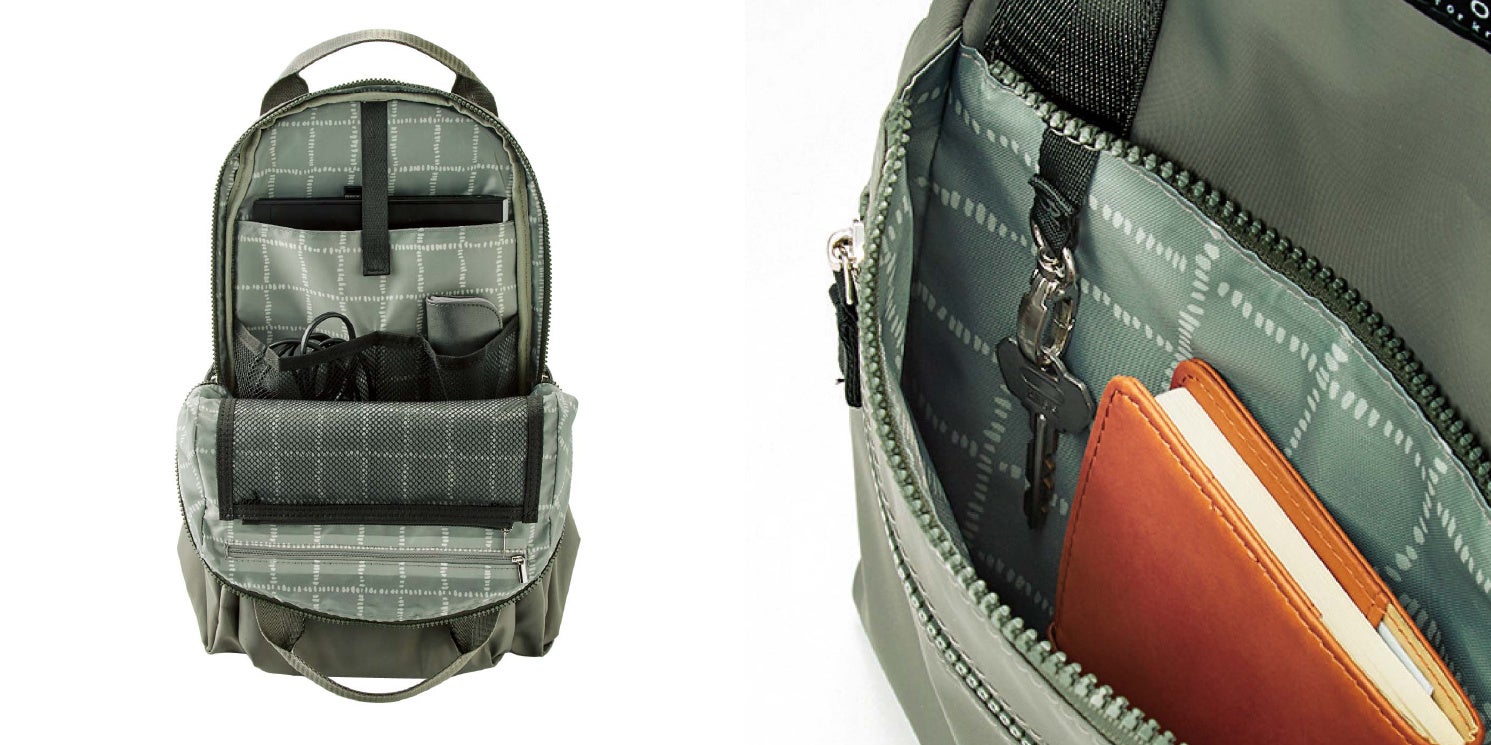 ファッションとアウトドアの、ちょうど間。見た目はコンパクトですっきりと洗練された印象でありながら、パソコンが入るクッション入りのポケットがついた、はっ水性のある生地のリュックです。背面ポケットに入れた物を背負いながらサッと取り出すことができます。日常使いと、アウトドア利用どちらにも活躍します。