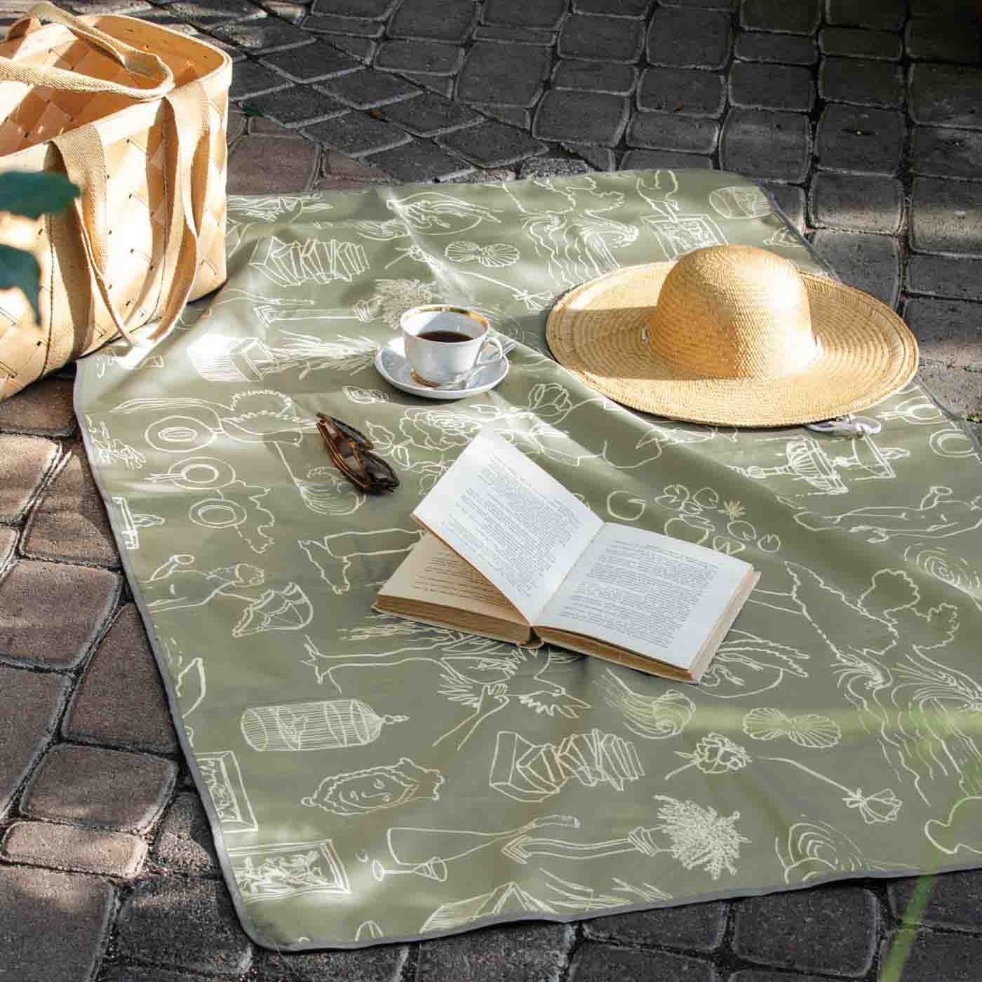 ナチュラルな配色と、生地ライクな風合いのプリントを施したレジャーシートです。