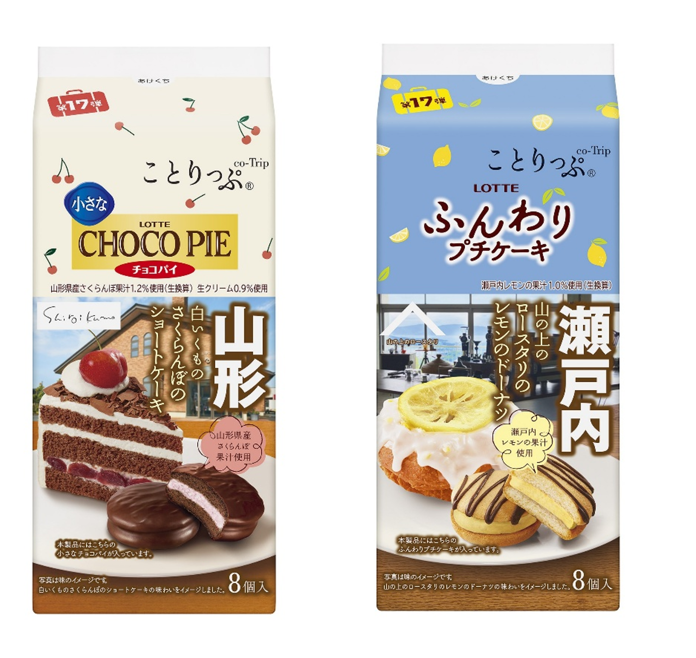山形「ことりっぷ 小さなチョコパイ<白いくものさくらんぼのショートケーキ>」、岡山・瀬戸内「ことりっぷ ふんわりプチケーキ<山の上のロースタリのレモンのドーナツ>」発売