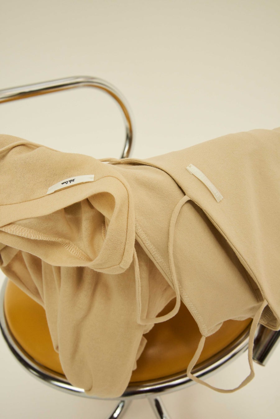 外側のトップスはMila Owenらしいベーシックなフォルムはそのままに、シアーなラメ混糸やスラブ生地のTシャツで今季のムードを反映させました。
