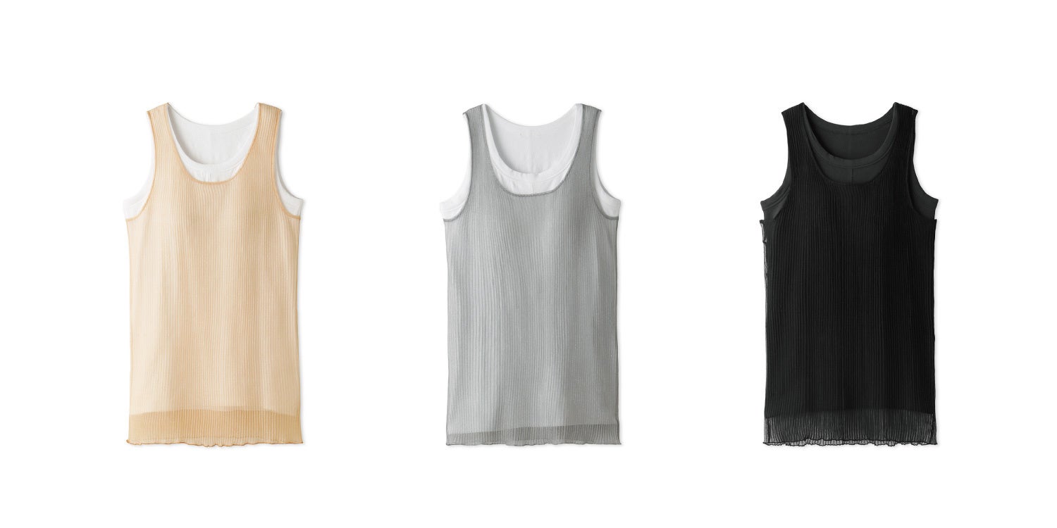 ラインアップは、レイヤードのタンクトップ、セットアップで着れるシアートップスとスカート、インナーキャミソール付きTシャツの合計4型。