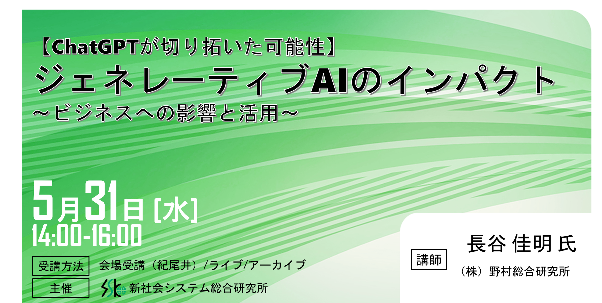 「ジェネレーティブAIのインパクト」と題して、(株)野村総合研究所 IT基盤技術戦略室 上級研究員 長谷 佳明氏によるセミナーを2023年5月31日(水)に開催!!