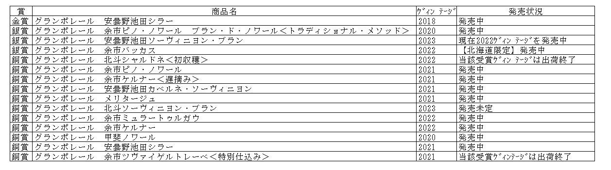 また、銀賞を受賞した同ブランド初の瓶内二次発酵スパークリングワイン「グランポレール 余市ピノ・ノワール ブラン・ド・ノワール<トラディショナル・メソッド>2020」など、金賞1アイテム、銀賞3アイテム、銅賞11アイテムと計15アイテムが各賞に輝きました。