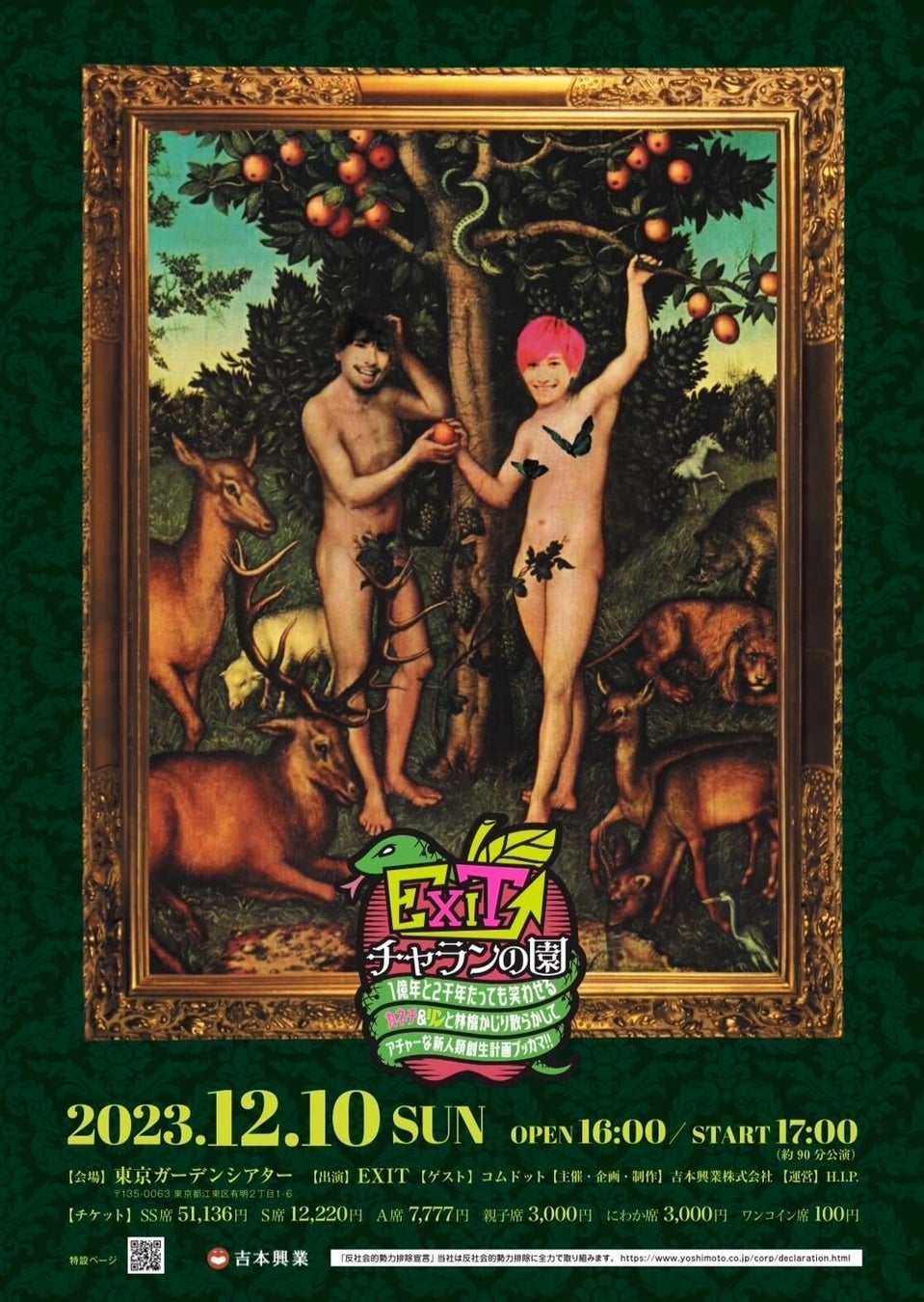 “EXIT”過去最大規模となる単独ライブ「チャランの園 1億年と2千年たっても笑わせる~カネチ&リンと林檎かじり散らかしてアチャーな新人類創生計画ブッカマ‼~」ゲストとして“コムドット”の出演が決定!