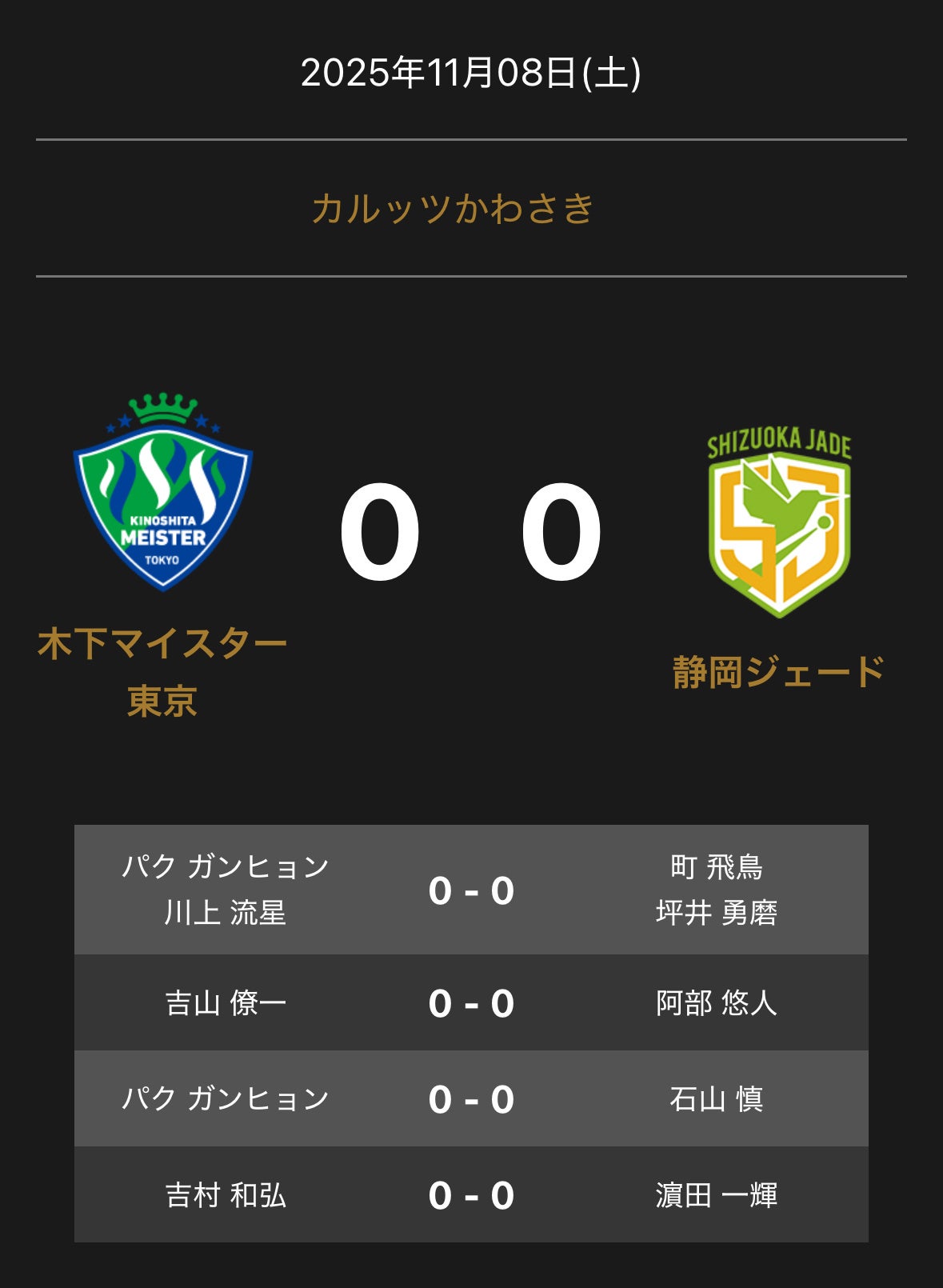 ノジマTリーグ 2025-2026シーズン 公式戦 11月8日開催 木下マイスター東京 vs 静岡ジェード 対戦オーダー発表