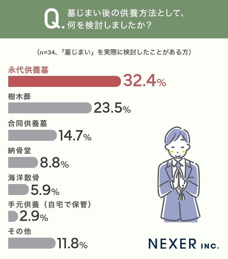次いで「樹木葬」が23.5%、「合同供養墓」が14.7%と続きました。