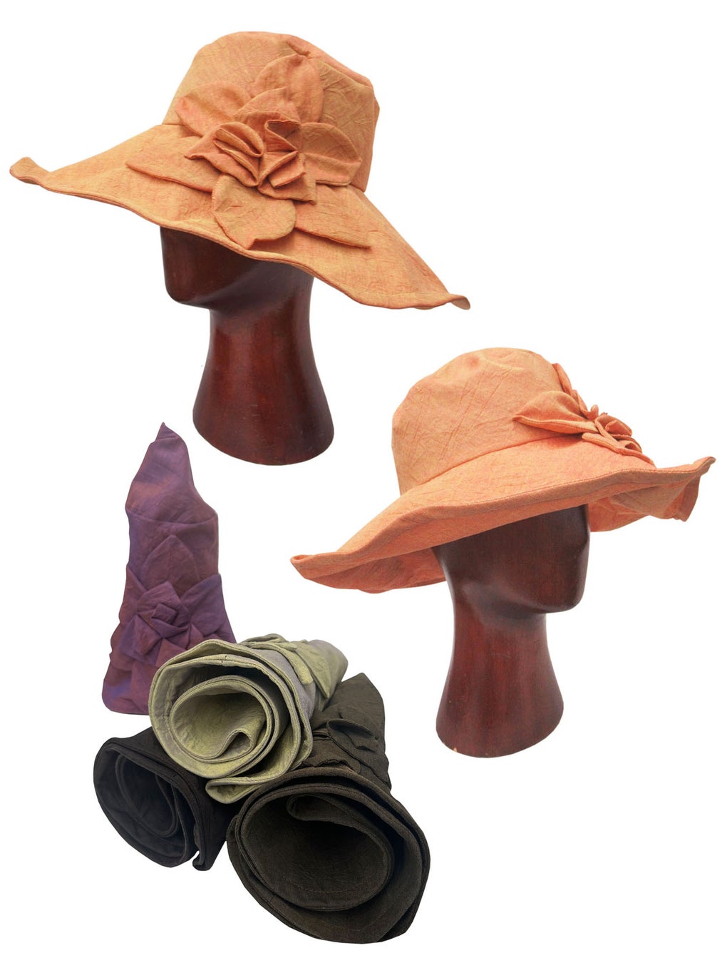 さらりとしたアバカ麻素材の折りたためる帽子はお出かけにおススメ。