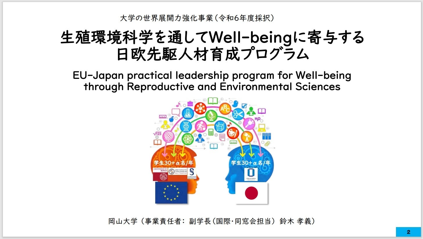 【岡山大学】大学の世界展開力強化事業(令和6年度採択)「生殖環境科学を通してWell-beingに寄与する日欧先駆人材育成プログラム」について