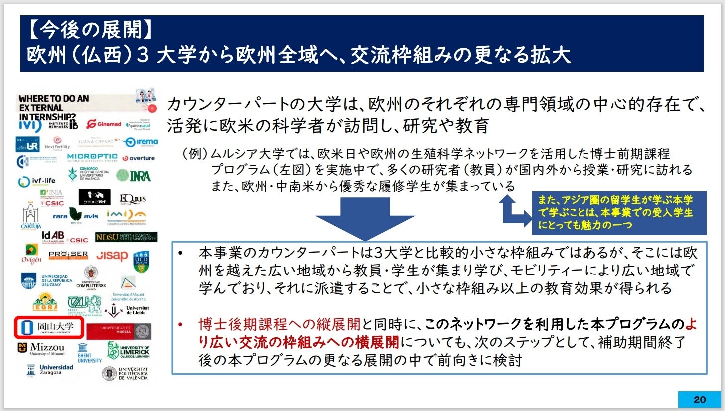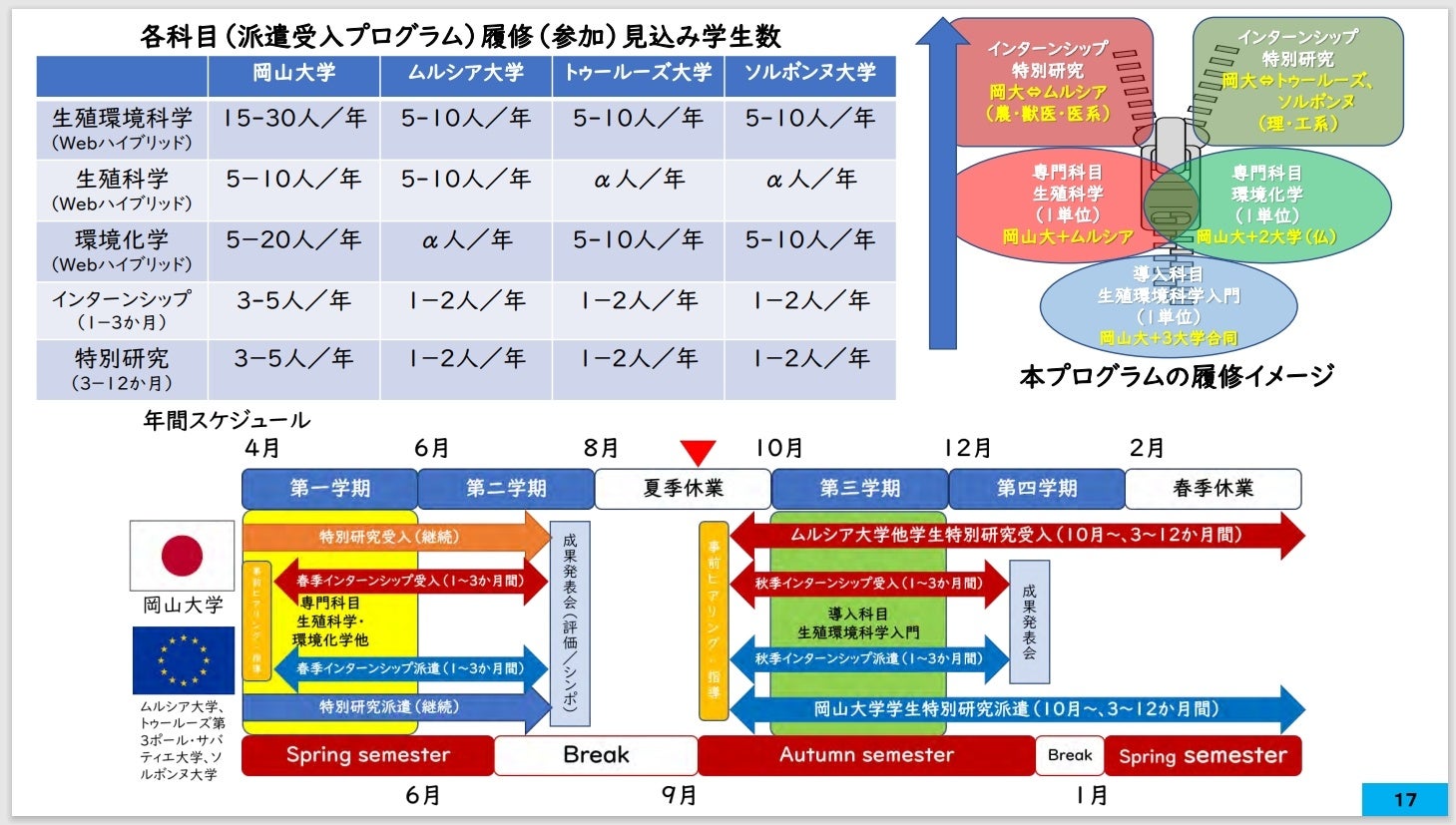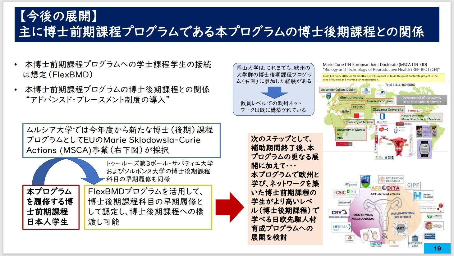 また本事業でのパートナー大学も、ヨーロッパの生殖科学教育の中心機関であり、国際大学間ネットワークを持つスペインのムルシア大学。それにフランスのトゥールーズ第3ポール・サバティエ大学とソルボンヌ大学となります。