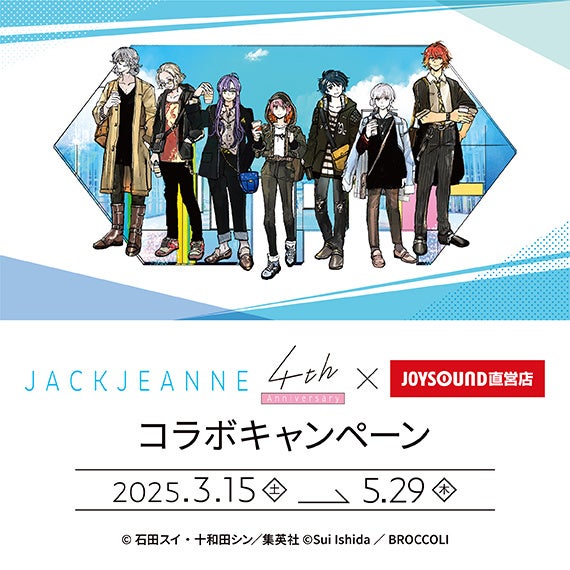 株式会社エクシングの子会社で、全国にカラオケ店舗・ネットカフェ店舗を展開する株式会社スタンダード(本社:東京都港区、代表取締役社長:小林克章)は、2025年3月15日(土)から2025年5月29日(木)までの期間中、「ジャックジャンヌ 4th Anniversary×JOYSOUND直営店コラボキャンペーン」と題し、JOYSOUND渋谷南口駅前店(東京)・JOYSOUND心斎橋店(大阪)の2店舗にカラオケコラボルームをオープン!また、JOYSOUND直営店68店舗にて、オリジナルポストカード付きコラボドリンクを展開します。