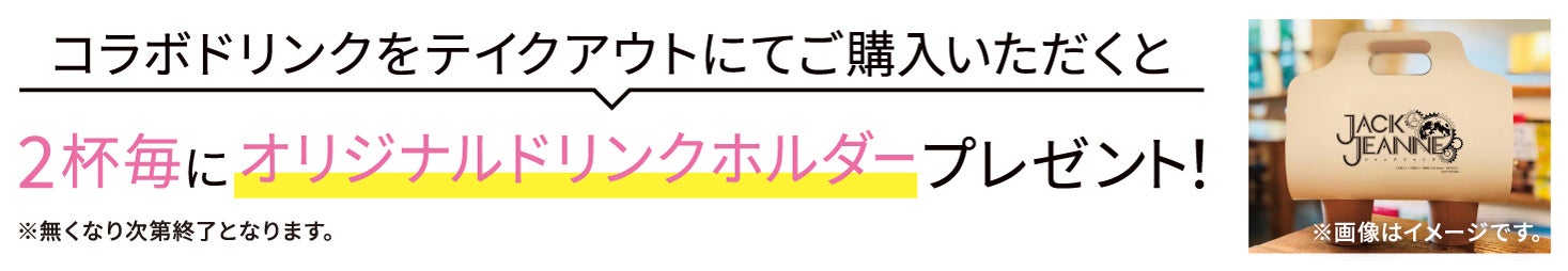 ドリンクテイクアウト実施店舗では、テイクアウトドリンク2杯ご購入毎にオリジナルドリンクホルダーをプレゼントいたします!