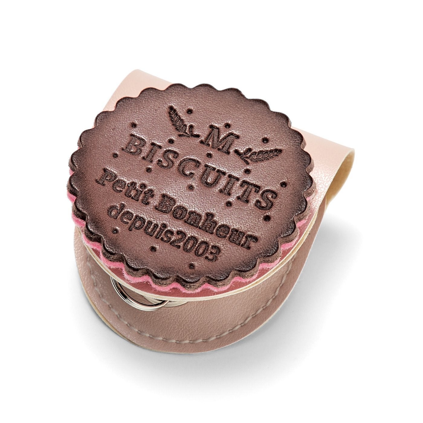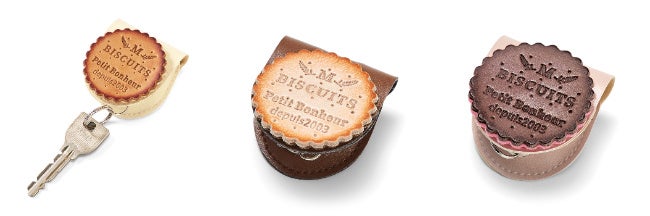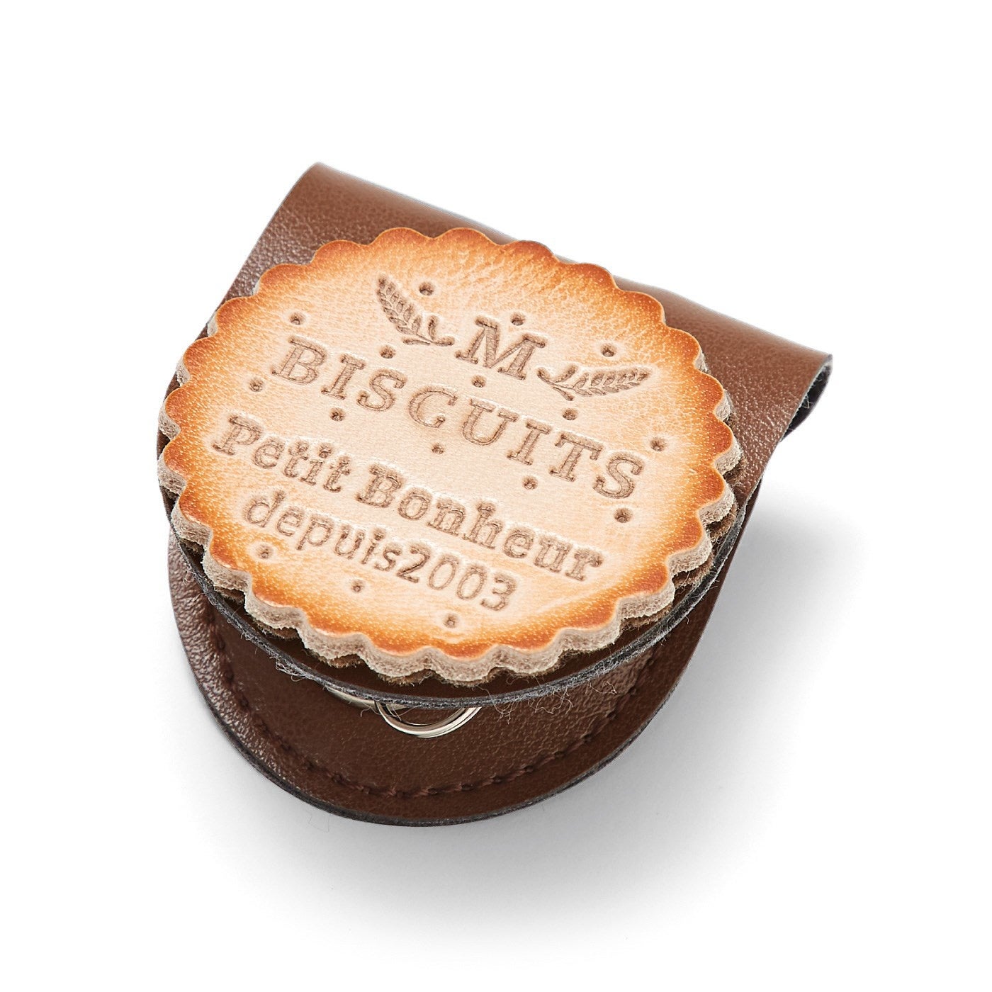 チャレンジドのていねいな革の手染めで、本物みたいにこんがり焼き色を付けた「本革ビスケット リール付きキークリップ」がフェリシモCCPから登場!