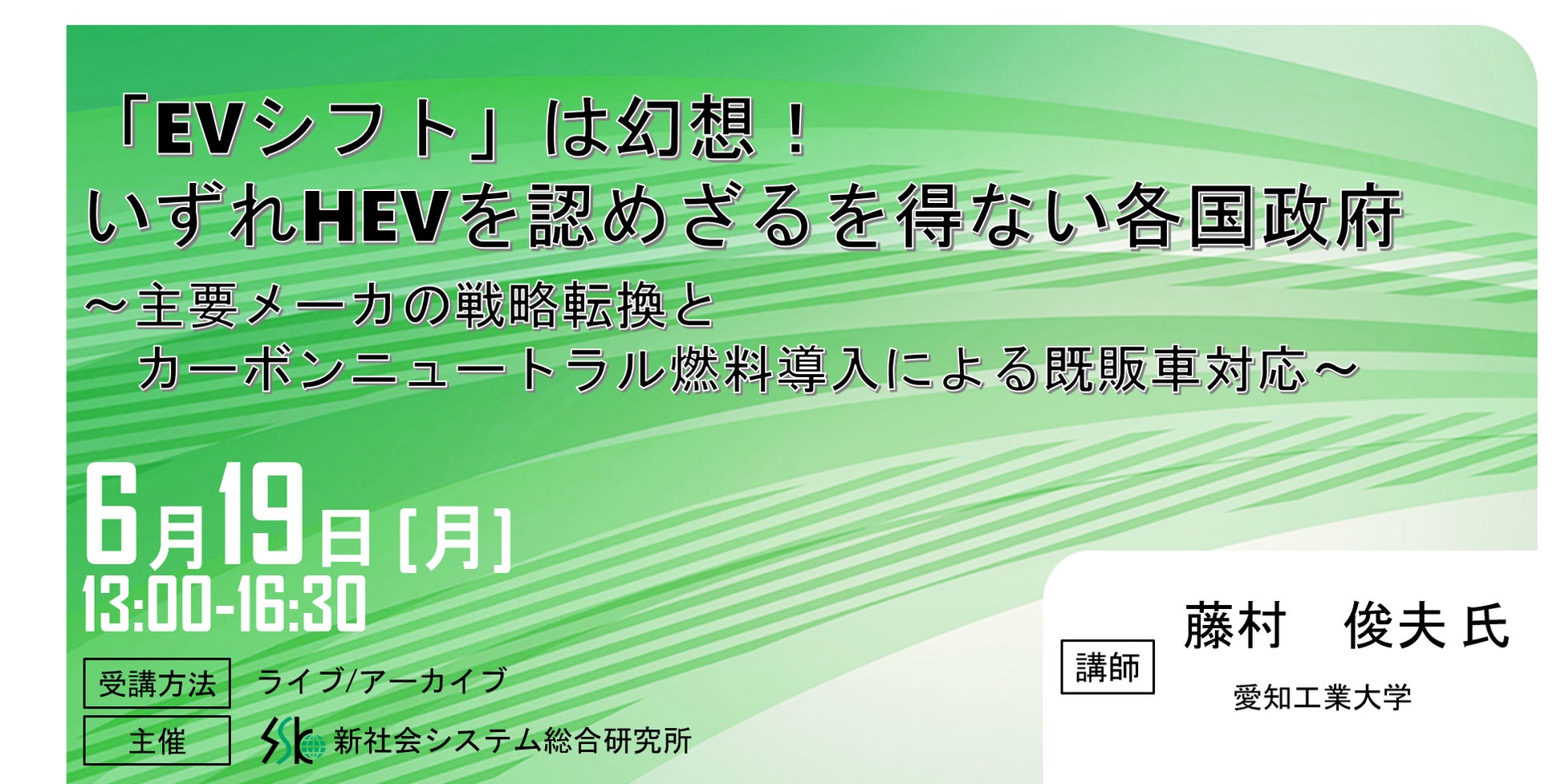 「「EVシフト」は幻想!」と題して、愛知工業大学 工学部 客員教授 [元トヨタ自動車(株)] 博士(工学)藤村 俊夫氏によるセミナーを2023年6月19日(月)に開催!!