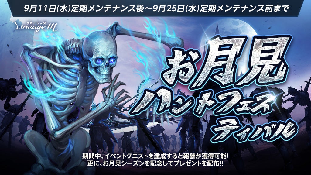 PCオンラインRPG「リネージュ」のモバイル版タイトル『Lineage M(以下、リネージュM)』のサービス、運営をしているエヌ・シー・ジャパン株式会社(本社:東京都港区、代表取締役:林 元基(イム ウォンキ)、以下エヌシージャパン)は、2024年9月11日(水)にお月見イベント2種の開始をおしらせします。