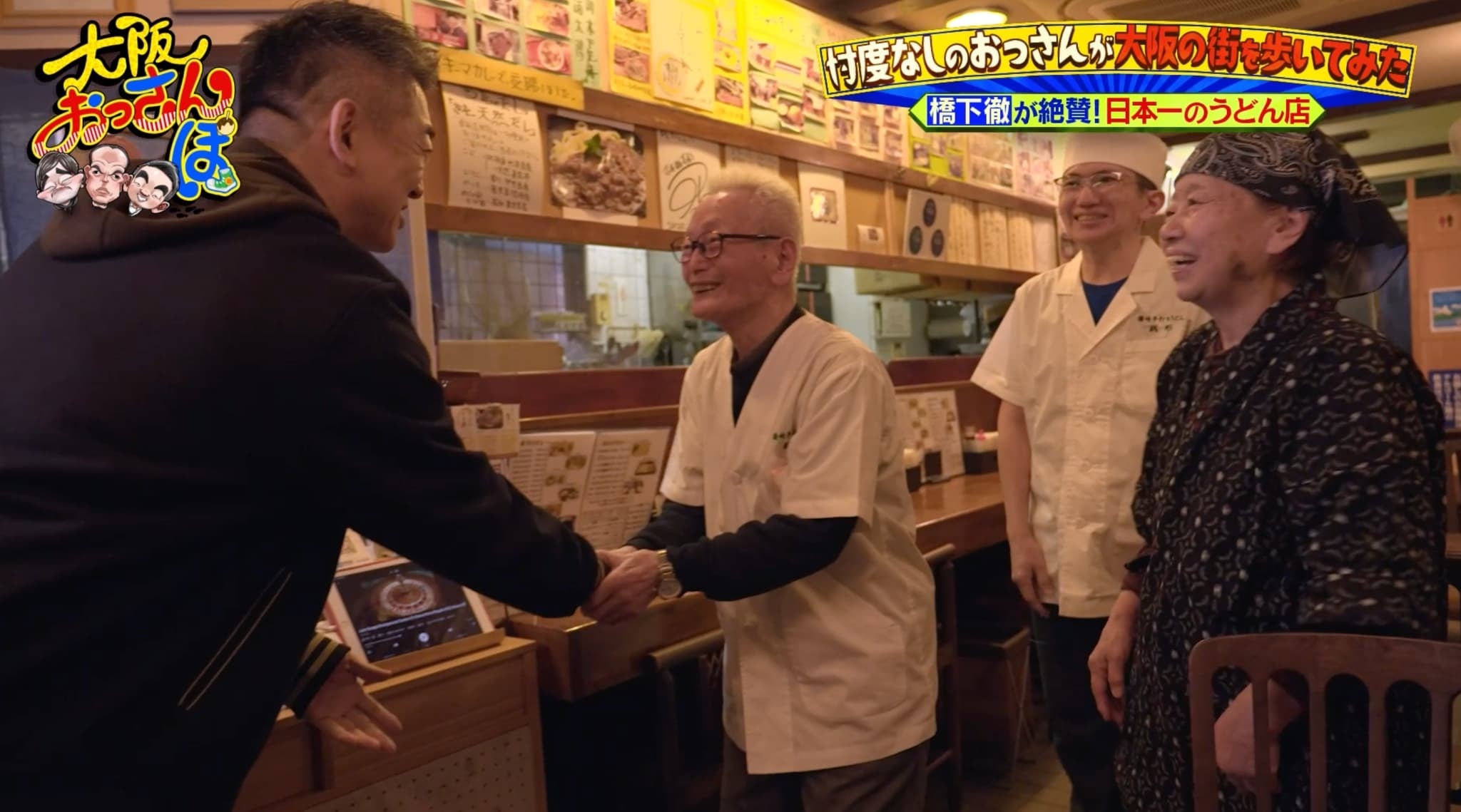 続いて、「ぜひお連れしたい店がある」という橋下に連れられ、「さぬき手打ちうどん 銭形」へ。橋下は政治家になる前から家族で通っているそうで、「僕は日本一のうどん屋さんだと思っています」と胸を張る。店を訪れるのは久しぶりで、大将と固い握手を交わす橋下。