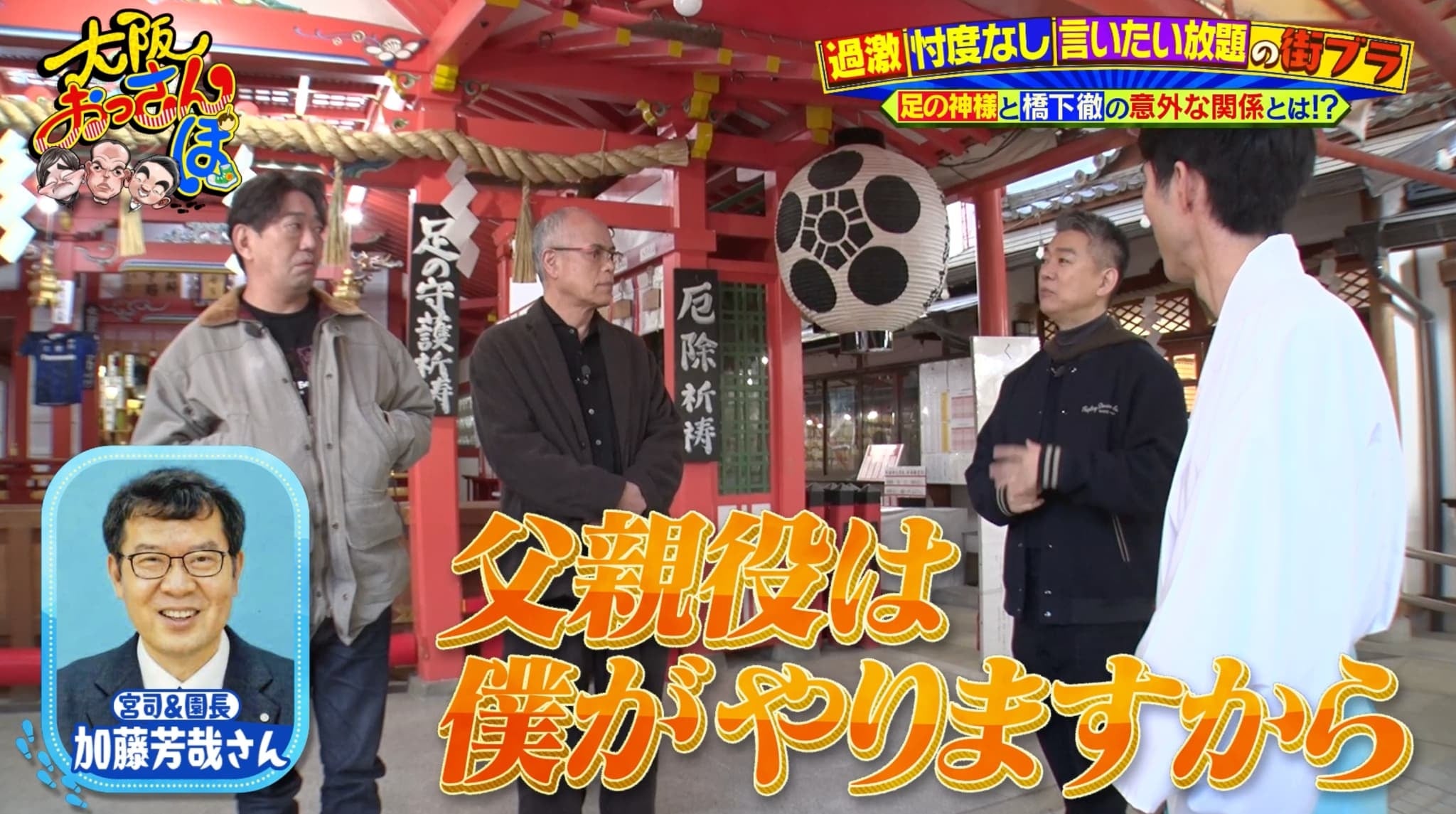 服部天神宮は「ものすごくお世話になっている」と橋下。実は子どもたちは服部天神が運営する幼稚園の出身。大阪府知事時代には、宮司でもある園長から「父親役は僕がやりますから、大阪の仕事に専念してください」と背中を押されたというエピソードに、黒田は『お賽銭50万円くらい入れなさいよ!』とツッコんだ。