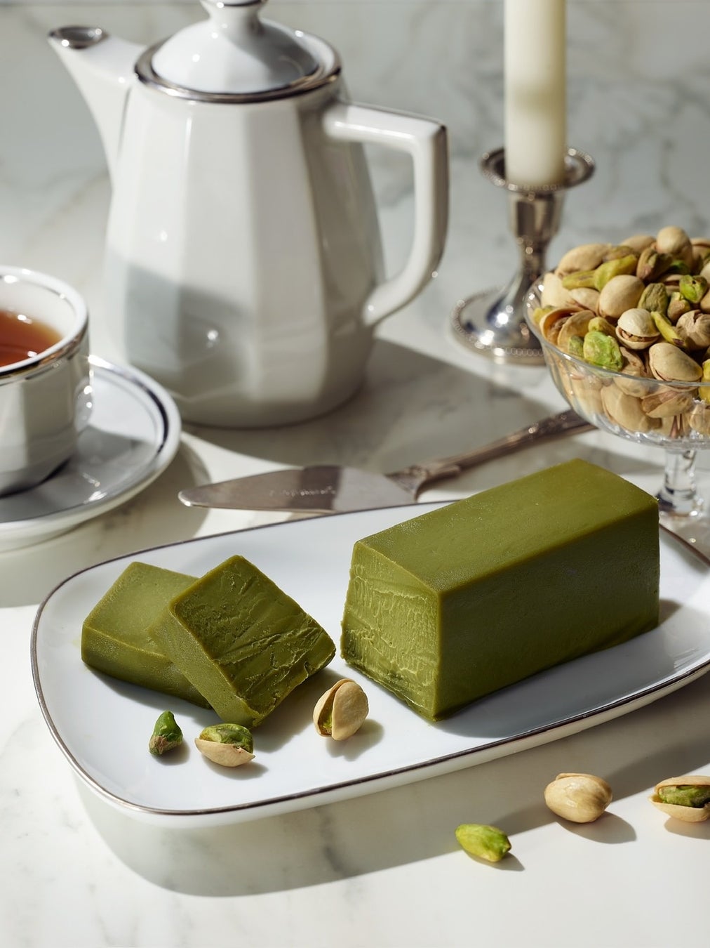 その緑はお菓子を色鮮やかに彩り、あなたのひと時までも贅沢に引き立てる。