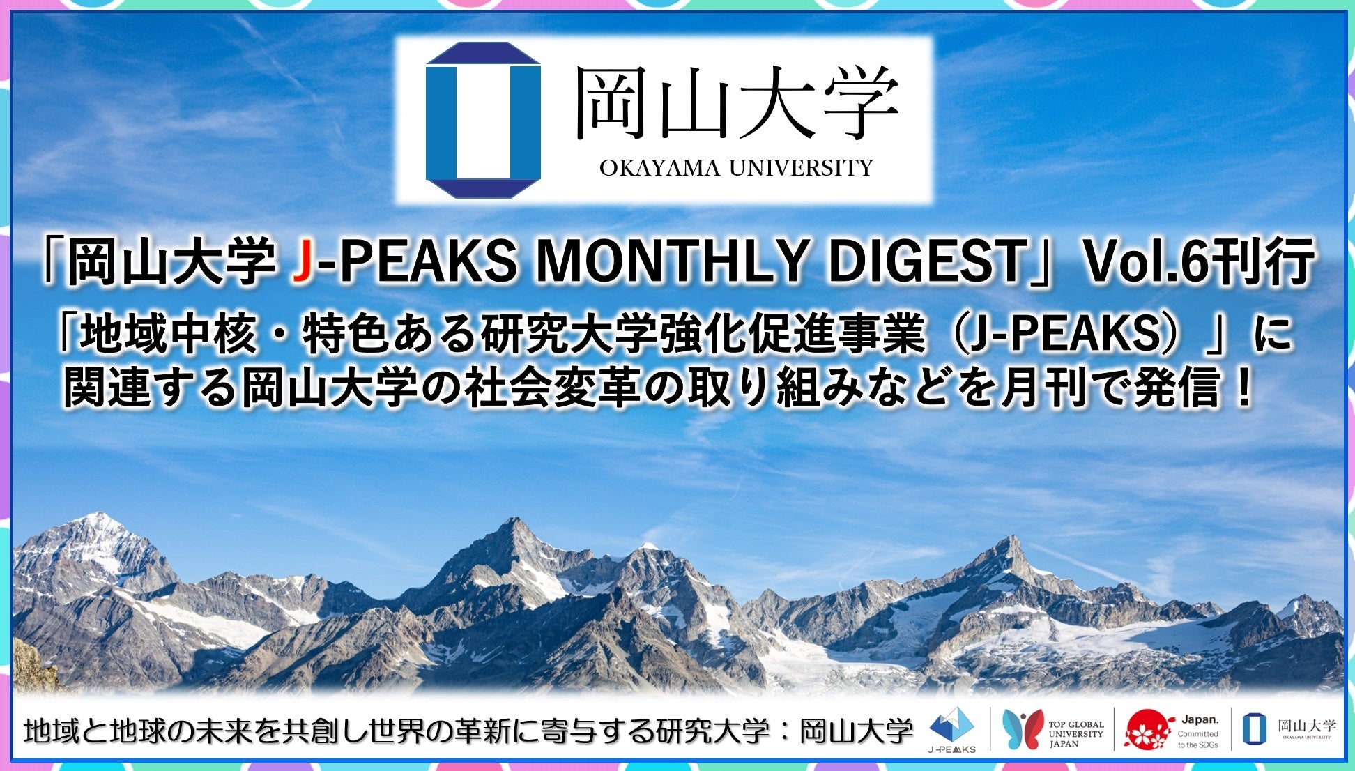 「岡山大学 J-PEAKS MONTHLY DIGEST」Vol.6刊行~「地域中核・特色ある研究大学強化促進事業(J-PEAKS)」に関連する岡山大学の社会変革の取り組みなどを月刊で発信!~