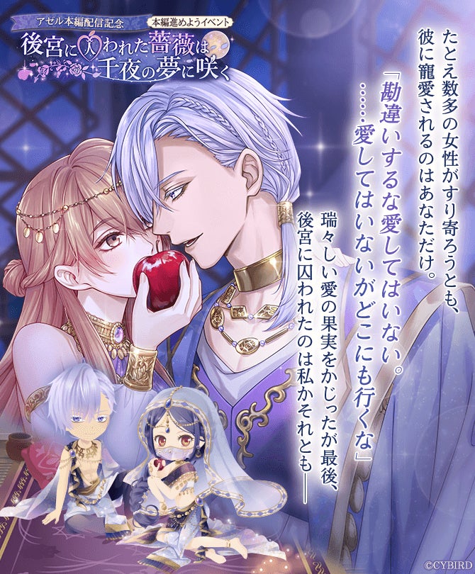 「アゼル=ラドワーン」本編配信を記念して、アプリ内では本編進めようイベント「アゼル本編配信記念 後宮に囚われた薔薇は千夜の夢に咲く」を、開催しています。