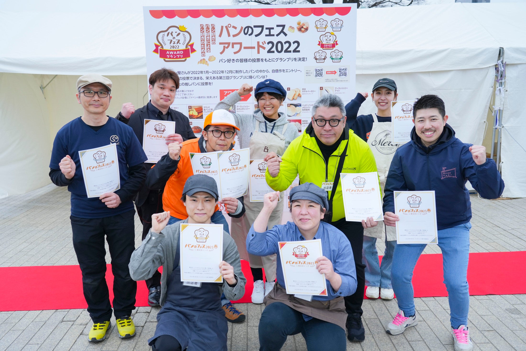 「パンのフェスアワード」は、2021年に誕生したパン好きのパン好きによるパン好きのためのパンのアワード(賞)です。3回目となる今回は、2022年1月~2022年12月に新発売されたパンが対象となっており、事前投票を1pt、会場投票を3ptとして集計し、グランプリ1店舗、ゴールド2店舗、シルバー4店舗、ブロンズ5店舗の4種類の賞を決定。本日、会場内にて授賞式を行いました。